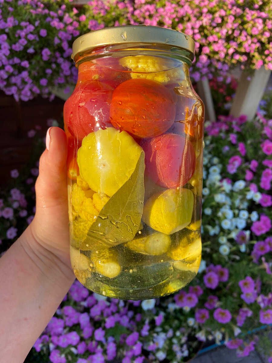 Это рецепт от моей сестры, а она знатная хозяйка 👌💯 Идеален для томатов Черри или овощного ассорти. Обещаю, вам понравится и в ход пойдёт даже рассол 👌 Банки готовим, при желании стерилизуем На литровую банку - зелень петрушки, предварительно обдав кипятком (но и без петрушки очень вкусно 👌) - лавровый лист 1 - хрен - пластина корня с 5 рублевую монету или часть листа. Я ещё ломтик острого перца добавляю 🔥люблю поострее )) - несколько зубчиков чеснока - чайная ложка семян горчицы - душистый перец 2 горошины - чёрный перец 4 горошины 1 раз заливаем кипятком и оставляем до остывания Сливаем и из этого настоя готовим маринад На 1 литр, не банку!!! - Соль крупная 1 ст л - Сахар 3 ст л - Уксусная эссенция 70% - 1 ст л, добавляем перед закипанием Заливаем, закрываем и вниз головой под шубу на сутки Вам точно понравится 👌 У нас эти баночки с ассорти ушли все в первую очередь в прошлом сезоне 💚