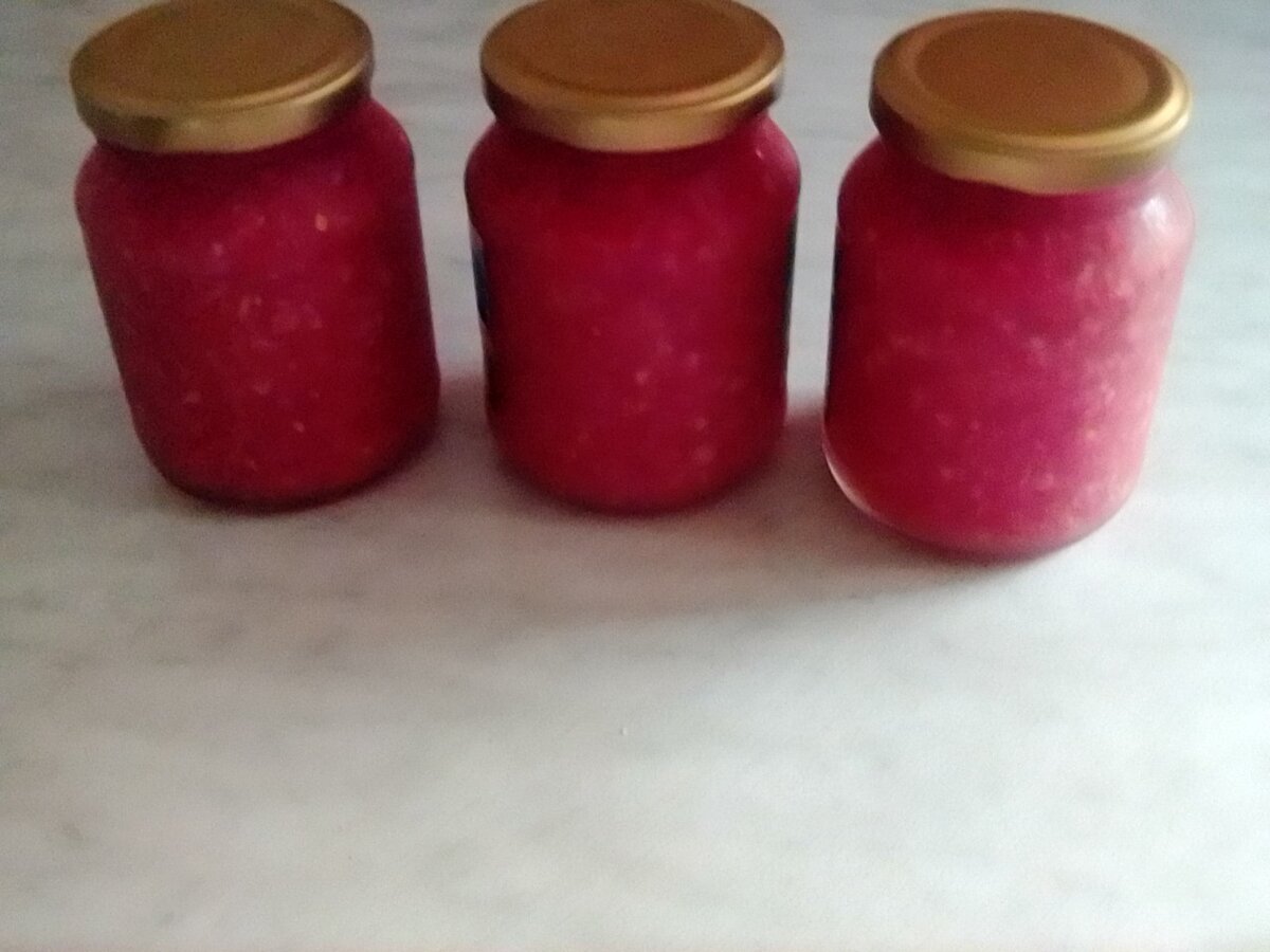 Скоро зима, а заготовку нужно сделать сейчас. Вкусно и для здоровья полезно. Ингредиенты: Помидоры помыть, нарезать кусочками и пропустить через мясорубку (средняя решетка). Жгучий перец нарезать мелкими кусочками, чеснок промыть и начистить, хрен помыть и оскоблить. Все прокрутить. Хорошо все перемешать. Когда соль полностью раствориться разложить по стерелизованным банкам и закрыть крышками. P.S. Если вы делаете хреновину впервые и не хотите пролить море слез и задыхаться от хрена, наденьте на мясорубку полиэтиленовый мешок и хрен накрутите в него отдельно, а потом смешайте с остальным содержимым.