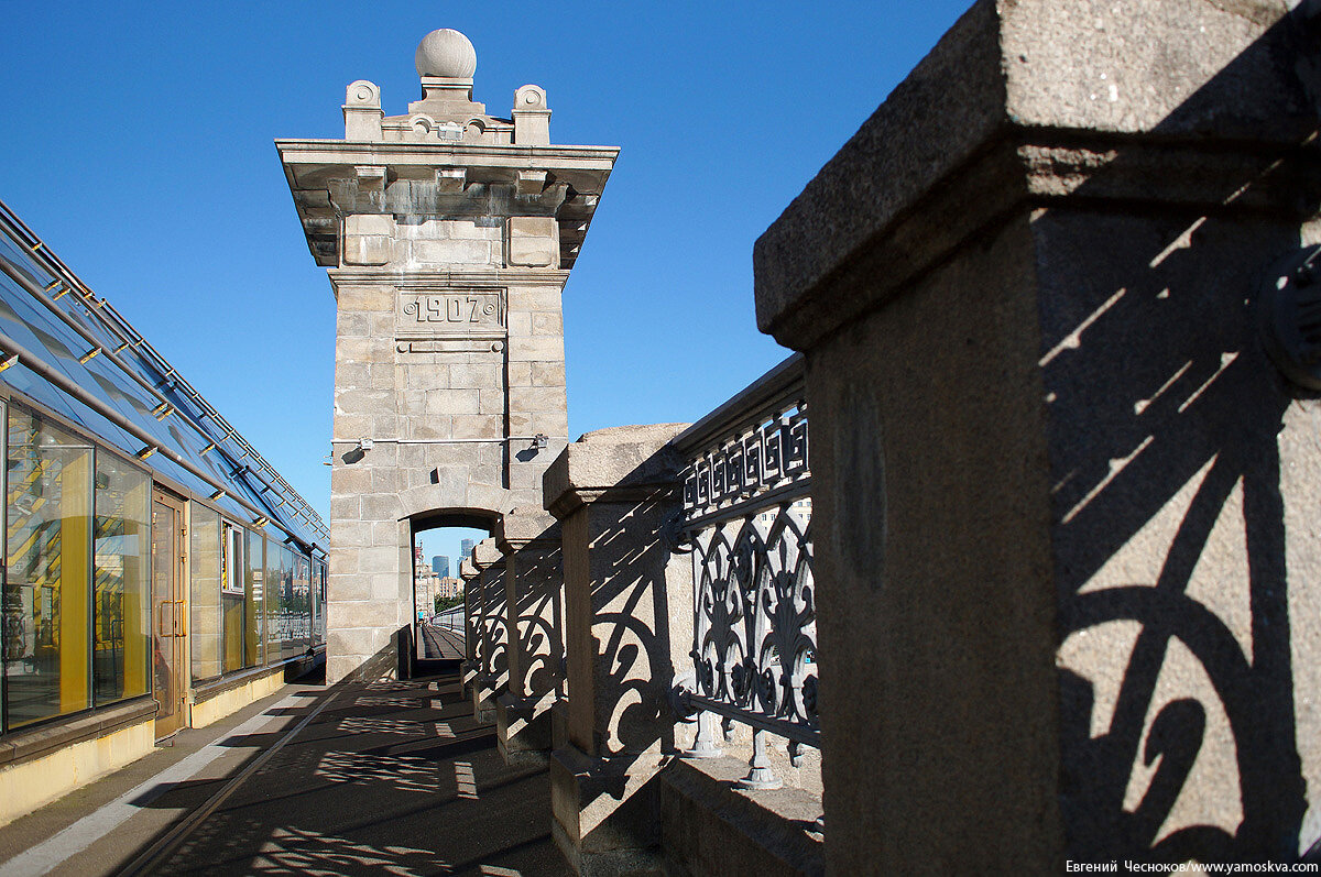Андреевский мост сначала назывался Сергиевским, он строился в 1905-1907 годах по проекту инженера Лавра Проскурякова и архитектора Александра Померанцева в качестве моста Московской Окружной железной дороги.