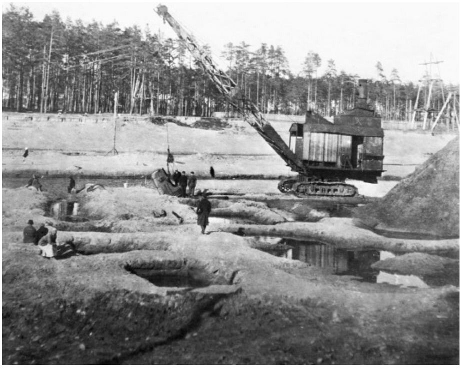 История Не все знают историю, как возник этот водоем. Многие думают, что здесь он существовал всегда. Но это не так. Начало его положено, из далёких, героических блокадных дней. Осаждённый и отрезанный город, производил оружие для победы над врагом. В больших цехах изготавливали мины, снаряды и другие боеприпасы. Заготовки для боеприпасов изготавливались с помощью форм. На формы требовалось огнеупорная глина и кварцевый песок. Так как город находился в блокаде, старые запасы быстро исчерпались, то большинство цехов осталось без самого важного материала - кварцевого песка. Тогда решили искать песок "дома". Искали и в Парголовских холмах, в Юкках и на Поклонной горе, во Всеволожске. И наконец взяли пробу в конце Ольгинской улице. И - удача! Добыча Это была опасная и тяжёлая работа. Этот район часто обстреливался артиллерией фашистов. За годы войны карьер на Ольгинской дал литейщикам сотни тысяч тонн песка, который был очень необходим. Недаром карьер называли "питательным пунктом" литей