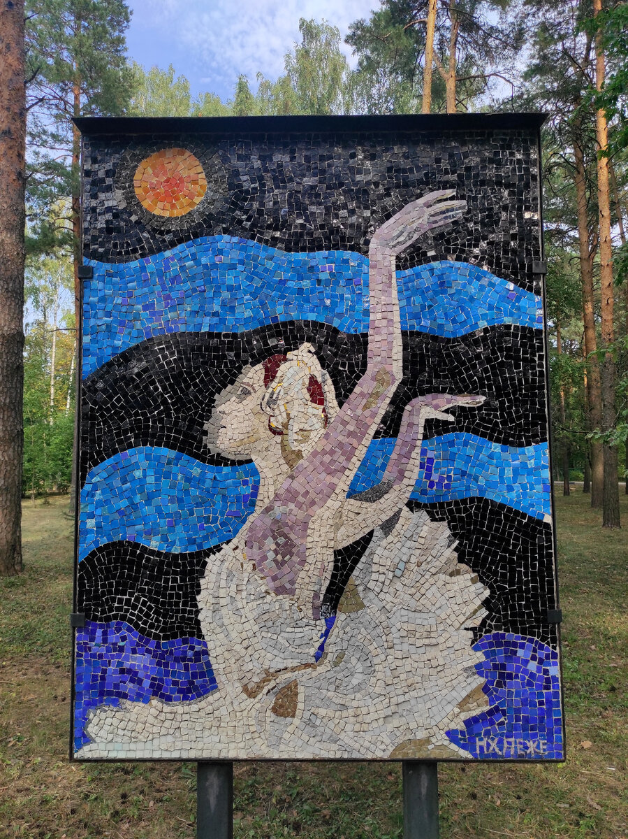 Десять мозаичных панно Надежды Леже c портретами известных личностей около Дома культуры на фоне потрясающих сосен: Майи Плисецкой, Дмитрия Шостаковича, Владимира Маяковского, Максима Горького, Петра Чайковского, Зои Космодемьянской и др. Надежда Петровна Ходасевич-Леже (1904-1982) − российская и французская художница, двоюродная сестра поэта Владислава Ходасевича, ассистентка и (в последние годы его жизни) жена художника Фернана Леже, создательница крупнейшего мемориального музея Леже. Надежда родилась в Белоруссии, в 1919 году училась в Государственных свободных мастерских («Свомас») в Смоленске, затем в Варшавской академии художеств. В 1924 году, она вместе со своим первым мужем Станиславом Грабовским переезжает в Париж, чтобы продолжить образование в Академии современного искусства, основанной Фернаном Леже. В 1927 году Надежда Ходасевич-Грабовская разводится с супругом, активно занимается живописью, графикой, декоративным искусством, издает французско-польский авангардный жу