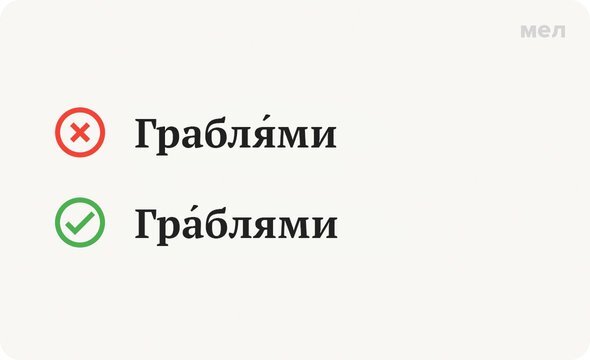 Дачный сезон подходит к концу; почти всё, что было посажено, уже прополото тяпками, полито лейками, выкопано лопатами и разровнено граблями. Только вот последний пункт иногда вызывает сомнения: как правильно: «гра́блями» или «грабля́ми»? Правильно: гра́блями Запомнить довольно просто: у существительного «грабли» (у него, кстати, есть лишь форма множественного числа) ударение падает на первый слог — и остаётся таковым во всех падежных формах. По этой причине правильно «говорить о гра́блях», «обходиться без гра́бель» (хотя существует допустимый разговорный вариант «без гра́блей») и, конечно же, «разравнивать землю гра́блями». Простое правило, которое не позволит наступать на те же грабли. Ещё больше весёлых и полезных карточек о русском языке — в «Грамотности» на «Меле» во «ВКонтакте». Подписывайтесь, чтобы всегда говорить и писать правильно! Фото: encierro / shutterstock / fotodom