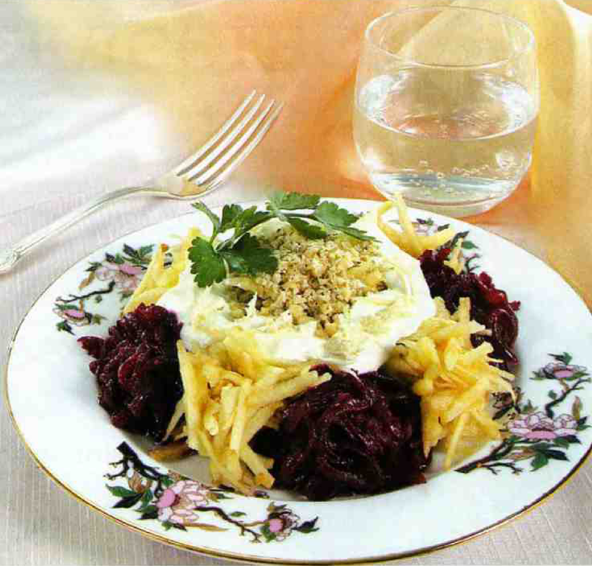 Свекла с хреном, яблоками и орехами. Вкусная закуска. Рецепт.