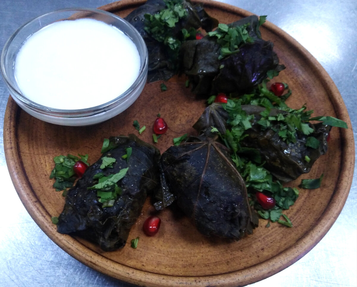 Привет, друзья! Я Андрей и здесь мы говорим о еде пусть и не всегда абсолютно полезной, но уж точно не вредной. Правильно есть вообще не вредно. Сегодня готовим долму. Знакомые армяне однажды научили, получается, как говорится, пальчики оближешь! Понадобится: Виноградные листья - 40 шт Фарш - 500 гр. Рис белый - 4 ст.л. Лук репчатый - 4 шт. Масло растительное - 2 ст. л. Петрушка (или кинза) - 3-4 веточки Перец чёрный - по вкусу Соль - по вкусу Приготовление. 1. Виноградные листья промыть, залейте кипятком на 7-8 минут, затем откинуть на дуршлаг, удалить черешки. 2. Спассировать очень мелко нарубленный лук. Не до колера, просто спассировать до мягкости. 3. Рис поварить 2-3 минуты и сразу слить воду. 4. Зелень мелко порубить. Закинуть в фарш зелень, обжаренный лук, рис, добавить зиру, молотый перец и соль. Все хорошо перемешать. 5. Виноградный лист класть гладкой стороной вниз. На него в центр формируется небольшая котлета и сначала подворачивается к центру верхни