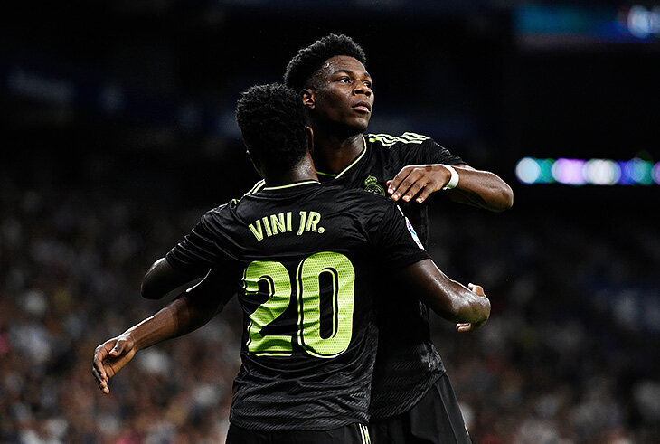У Тчуамени первый ассист. В воскресенье «Реал» сохранил лидерство в Ла Лиге, обыграв «Эспаньол» – 3:1. Снова в центре поля у мадридцев вышел Орельен Тчуамени. Давление из-за ухода Каземиро никак не отразилось на игре 22-летнего француза: уже на 12-й минуте он обыгрался с партнером в стеночку и запустил в штрафную Винисиуса – тот в касание открыл счет. Однако под конец первого тайма начались проблемы. «Мадрид» отдал инициативу и тут же поплатился: Куртуа потащил первый удар Хоселу, но с добиванием уже не справился. К середине второго тайма пробудился Бензема: сначала он обводящим ударом проверил кипера «Эспаньола» (Лекомт справился), а на 66-й минуте забил с прострела Крооса. Гол не засчитали из-за небольшого офсайда. Даже если Карим молчит весь матч, в нужный момент он даст результат. На 88-й минуте так и случилось: француз в прыжке замкнул прострел Родриго. На этот раз никакого офсайда – 2:1. Перед этим чемпионы требовали пенальти за падение Винисиуса, но судьи нарушения не увидели. П