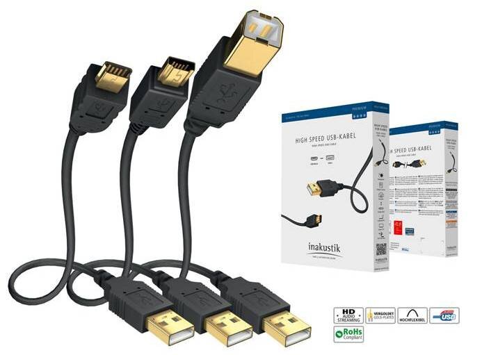 Premium High Speed USB 2.0 Кабель Premium High Speed USB 2.0 обеспечивает быструю и надежную передачу данных, например, между MP3-плеерами, жесткими дисками, фото и видеокамерами и DVD-проигрывателями, телевизорами и ПК. Стандарт USB 2.0 предоставляет возможность передачи данных со скоростью 480 Мбит/с. Кабель In-Akustik Premium High Speed USB 2.0 1m 01070001 Кабель In-Akustik Premium High Speed USB Micro 2.0 2m 01070042 Кабель In-Akustik Premium High Speed USB Mini 2.0 5m 01070025 На сайте доступны длины: 1, 2, 3, 5 метров. Exzellenz High Speed USB 2.0 Кабель Exzellenz USB специально разработан для потоковой передачи аудио форматов высокой четкости. Витая пара с тройным экранированием защищает чувствительные сигналы от внешних помех. Посеребренные сигнальные проводники и идеально подобранное волновое сопротивление гарантируют быструю и четкую передачу данных. Силовые проводники увеличенного сечения обеспечивают стабильное снабжение стационарных компонентов или быструю зарядку мобильн
