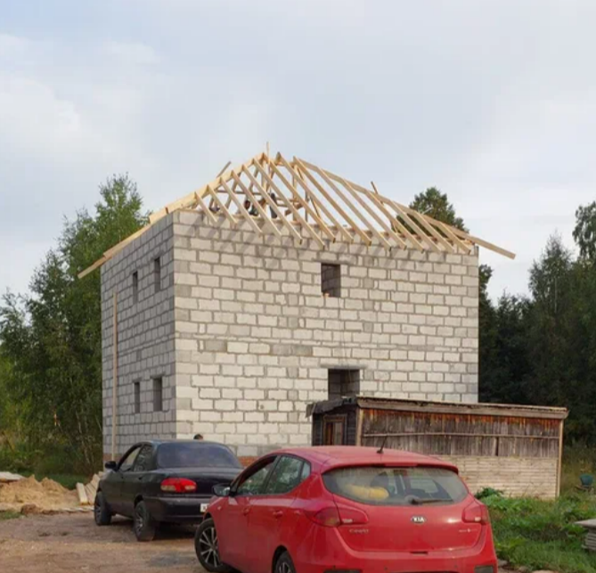Чем выше поднимается дом, тем меньше я понимаю что и как надо делать) Моё первое образование было связано с грунтами и фундаментами (инженерная геология - исследование грунтов, как фундамента для постройки). Поэтому выбор фундамента был абсолютно осмыслен. Проект дома я тоже осилила), первый этаж, второй этаж, санузлы 1 и 2-го этажа. Материал для стен выбрала. А вот как надо делать крышу понятия не имею. Общие представления есть, какой материал выбрать и почему, какую конструкцию, какой уклон и цвет. Размах в возможной высоте. А вот как собирать этот конструктор особого понимания у меня нет( Придётся довериться своему прорабу и надеяться, что он всё делает правильно. У меня работают удивительные узбеки, всегда чистые и в белом) Итак, что и как делают. Сначала на армопояс положили мауэрлат, прочно закрепив его шпильками. На мауэрлат опираются балки (доска 5х20) чердачного перекрытия, расстояние между ними 59 см, на 1 см меньше ширины утеплителя, будем использовать минеральную вату. Пос