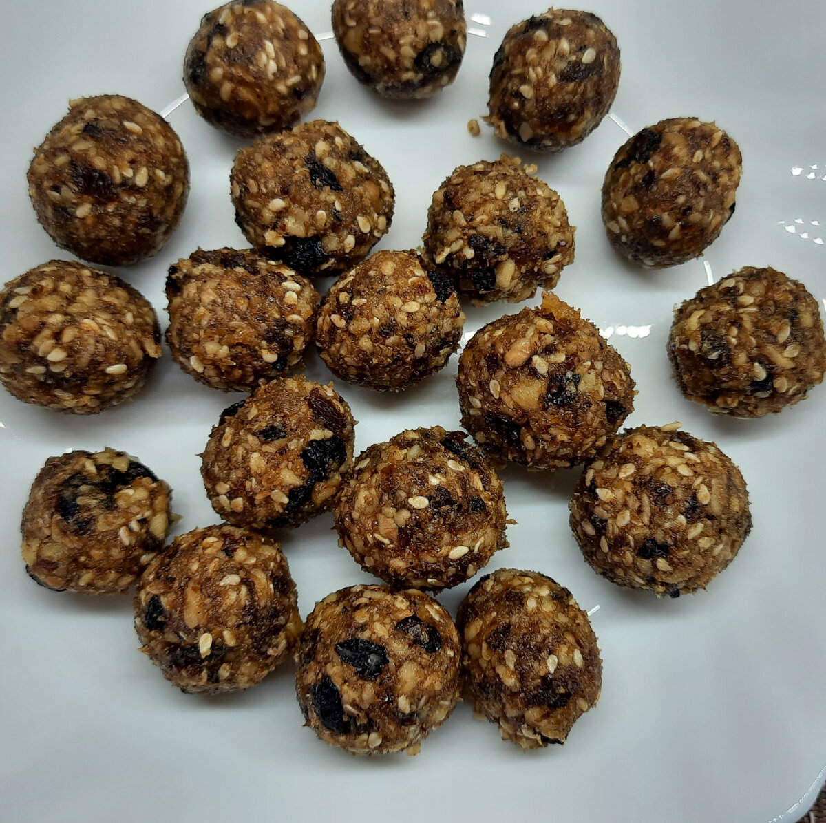 Всем привет! Я сладкоежка, конфеты могла есть килограммами, но рано или поздно приходится задуматься о своём здоровье...всевозможные Е в составе конфет отбили напрочь желание их употреблять. А чая с конфеткой ой как хочется. У кого то из фитнесс блогеров увидела конфеты из сухофруктов, изменила рецепт под себя, и теперь у меня всегда есть баночка с вкусными и полезными конфетками к чаю. Да, они калорийные, но мне достаточно съесть всего лишь одну конфетку, что бы утолить безумную тягу к сладкому. И главное конфетки то получаются полезные! Их полезно употреблять тем , у кого есть проблемы с сердцем, потому что в сухофруктах содержится полезный калий, который необходим нашему сердцу. Пропорции можно взять свои. Кто то орешек побольше захочет, кто то изюма, не у всех есть сушеная смородина, можно добавить тыквенные семечки, тогда конфетки будут с лечебным действием. В блендер добавляю орехи и сушеную смородину, размалываю. Можно использовать мясорубку. Затем измельчаю изюм и финики. В ми