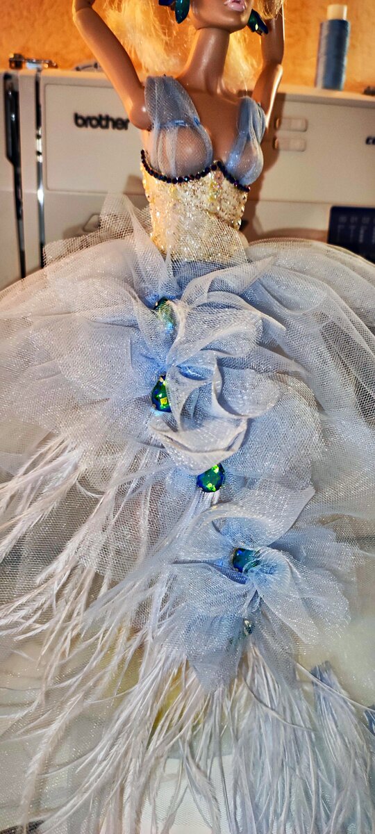Всем привет ! Меня зовут В.Редная и я обожаю кукол! Добро пожаловать на мой канал! А я все продолжаю работу на Ледяной принцессы, правда решила я ее переделать в Зимушку, уж больно сурова и красива. Жаль что из-за работы, приходилось делать медленно. Пыталась уже несколько раз написать статью, и каждый раз откладывала. Событий накопилось много) надо было успеть пофоткать кукол в выходные, когда ещё было солнышко. Но вернёмся к Зимушке) Почему то не хочется мне ее называть Снежной Королевой или как то иначе, а вот Зимушка, прям для нее. В прошлый статье я остановилась на том, что начала делать корсет. Точнее я его сделала и частично украсила. При определённом освещении сверкает он так, что глазам больно. Теперь низ платья. Оставить простую юбку я не захотела. Слишком скучно. Процесс как обычно я забыла отфоткать в достаточной мере, по этому покажу несколько фото и уже готовый результат. Вот такая воздушная красота у меня получилась. Ну а потом я задумалась о том, что верх платья сли