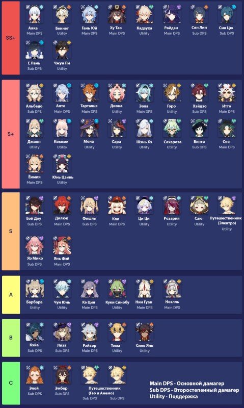 На картинке ниже можно увидеть текущее распределение героев по рангам с учетом созвездий, которые будут оптимальны для их базовых ролей. То есть кому-то для выполнения своей основной функции будет достаточно С0, а другим может потребовать С4 или С6. Эта информация позволит вам быстрее собрать отличную группу.
