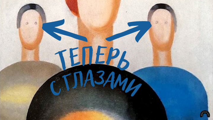 - Вот и с нашим героем произошла следующая неприятная ситуация. На выставку пришли подростки и решили подшутить над охранником. Они сказали, что это их работы и попросили пририсовать глаза картине. По наивности охранник послушал их и выполнил просьбу.