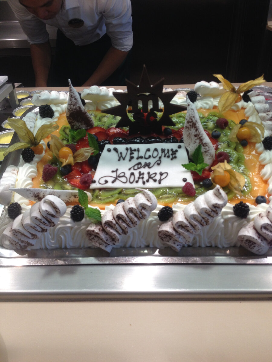 На круизных лайнерах MSC существует три варианты питания: 1. Это буфет или иначе шведский стол - начинает работать на завтрак с 6.30 и заканчивает работать в 22.00 - 23.00. Бывают небольшие перерывы на то чтоб сменить блюда с завтрака на обед и на ужин. Выбираешь сам себе что хочется, и в любых количествах. Но мы же с вами интеллигентные и воспитанные люди, притом, следящие за весом - поэтому выбираем не спеша и наслаждаемся морским пейзажем за бортом! Вход в буфет в любой одежде, чаще всего буфет расположен рядом с бассейном, поэтому многие идут в легких, летних одеяниях, в купальнике не пустят однозначно! 2. Снек - зоны. Работают 22 часа в сутки и там всегда в наличии пицца, наггетсы, хот-доги, фрукты и фруктовые салаты. Также, в определенной время в различных барах появляются определенные виды закусок, например, в кофе-баре очень вкусные печеньки с шоколадной крошкой. О том, что где и когда можно попробовать всегда пишут в ежедневной газете, которую приносят к вам в каюту кажды