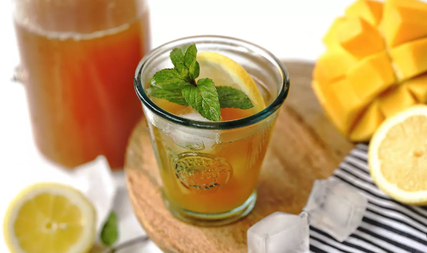 Одним из лучших освежающих напитков в летнюю жару является чай со льдом. Он просто готовится из смеси манго, которую также можно хранить в холодильнике, и охлажденного черного чая. Ингредиенты на: 2 литра Для приготовления пюре из манго потребуется: 2 манго 2 столовые ложки лимонного сока 2 столовые ложки сахара 300 мл воды Для чая 1 пакетик черного чая 2 столовые ложки сахара 1 веточка свежей мяты 1500 мл воды Приготовление Шаг 1: Положите мякоть двух манго в кастрюлю и залейте водой так, чтобы она была погружена в воду, но не больше. Добавьте лимонный сок и кипятите все около 5 минут. Взбейте смесь блендером и подсластите сахаром. Шаг 2: В полтора литра кипятка добавьте один или два пакетика черного чая. Через пять минут снимите его и подсластите сахаром. Дайте полностью остыть. Шаг 3: Размешайте пюре из манго в остывшем чае. Добавьте лед и свежую мяту.