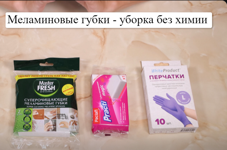 Приветствую, вы на канале “Марина Жукова”. Вы знаете, что такое меламиновая губка? Сейчас познакомлю! (для того чтобы не искать в Интернете средства о которых я рассказываю можно нажать на слово выделенное цветом). Меламиновая губка – уборка без бытовой химии. Однако это не эко средство и производитель предупреждает что работать меламиновой губкой нужно в перчатках. Мои любимые бренды меламиновых губок: Master Fresh, Paclan. Стоимость губок невысокая. Как ими пользоваться: В целях экономии я разрезаю пополам, поскольку в процессе уборки она будет стираться и уменьшаться в размерах. Кухонный гарнитур. Меламиновая губка отлично справляется с пятнами на кухонном гарнитуре. У меня шкафчики с прорезями, их сложно чистить, и меламиновая губка меня спасет в этом. Губка работает как ластик, она буквально стирает грязь. После губки, насухо протрите поверхность. Губка легко справляется с пятнами на линолеуме, обоях. Жир, краска, маркер, карандаши, чернила – все остается на губке. Верхняя одежда
