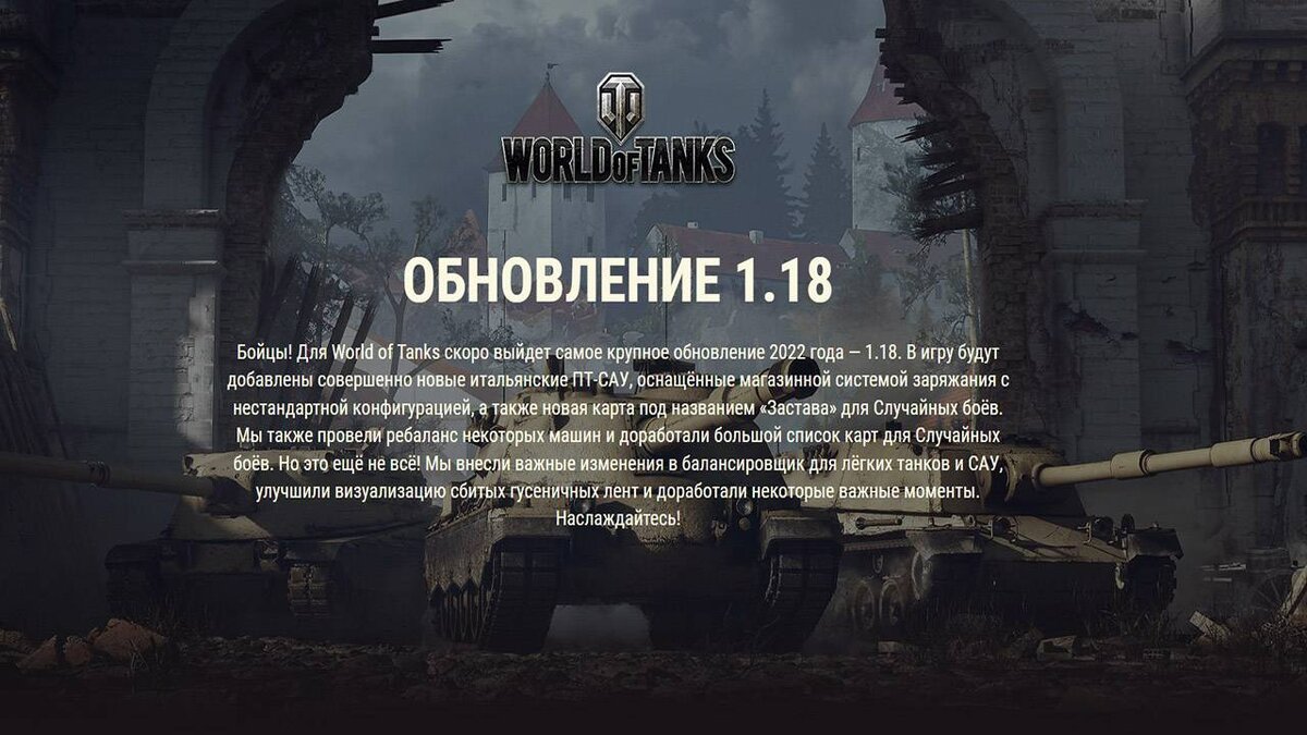 29 августа раскрыты все подробности и дата установки обновления 1.18 в World of Tanks, разработчики подготовили новую ветку ПТ-САУ Италии, ребаланс старых машин и новую локацию "Застава". В свежую ветку итальянских ПТ-САУ войдёт сразу 6 машин с V по X уровни, техника отличается хорошей лобовой броней и УВН, магазинной системой заряжания. Проведен ребаланс танков Kranvagn и AMX M4 mle54, а также M44, CS-44, Emli II и нескольких других моделей. Внесены правки сразу на 14 локациях для Случайных боёв. В очередной раз улучшен балансировщик, появились крутые визуальные эффекты сбитых гусеничных лент для каждой машины. Абсолютно новая карта "Застава" - победитель первого сезона "Разведки боем", игроки сами выбрали летнюю локацию с обилием зелени, защитных рвов и городских руин. Идут финальные работы по подготовке боевого пропуска IX сезона, подробности раскроют в отдельной статье. Установка патча запланирована на 31 августа с 3:30 по Москве. Новость на сайте: https://top-mmorpg.ru/novosti-i-