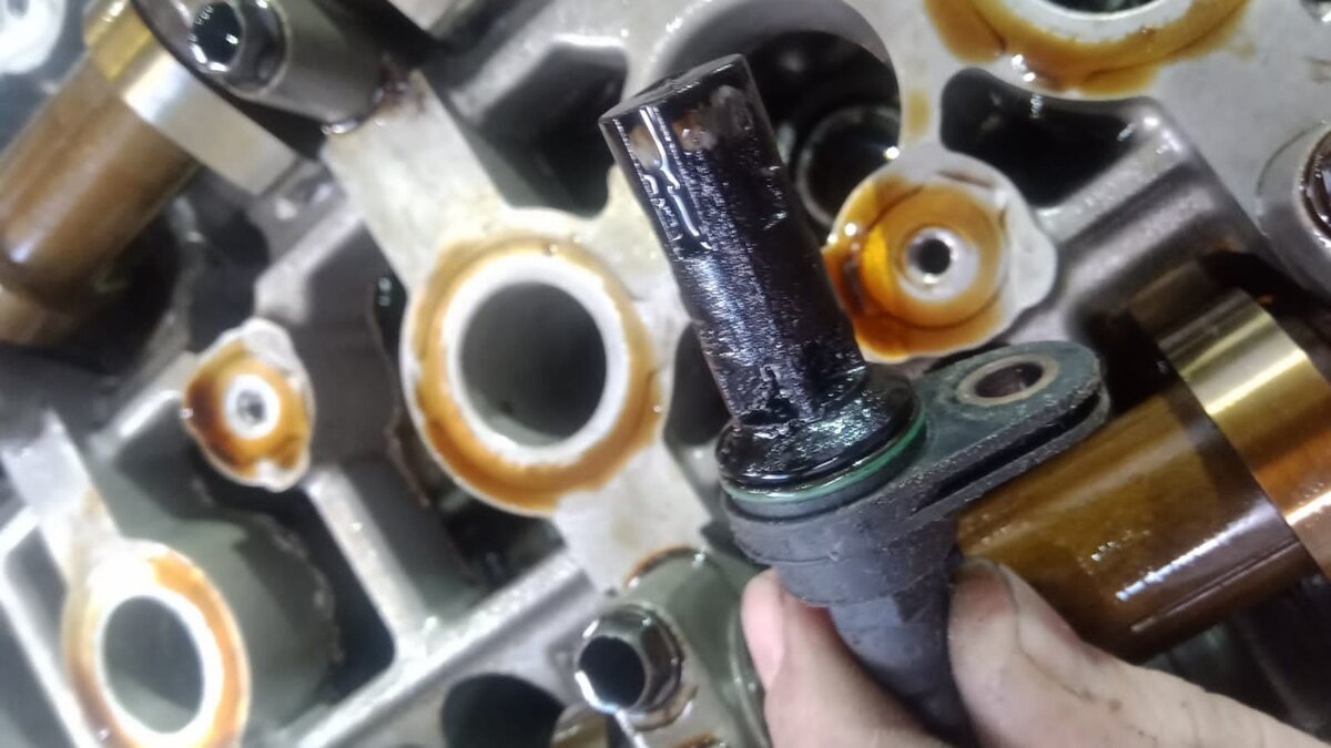 В работу поступил бензиновый двигатель 2.0 G4KA с автомобиля Hyundai Sonata NF 2006 года выпуска. Общий пробег автомобиля порядка 320000 км, но в нашей ситуации это не важно - мотор приехал к нам после капиталки в автосервисе города Курган, 2000 км пути. Двигатель ремонтировался на пробеге около 310000 км и через 10000 км снова стучит. За ремонт мотора уплачено порядка 143000 руб под ключ. С исполнителем ремонта владелец не договорился, продать автомобиль в таком виде и взять что-то адекватное взамен сейчас не представляется возможным, поэтому он решил самостоятельно снять и отправить мотор к нам транспортной компанией. Разбираем и оцениваем что же пошло не так в предыдущем ремонте. Снимаем датчик положение коленчатого вала - не помыт, забит грязью Комплект ГРМ ставили новый - детали оригинальные, натяжитель вышел на 3 зубца (и то за счет небольшой выработки на шестернях распредвалов). Муфта CVVT на впуске за 320000 км в отличном состоянии, не люфтит. К слову, заводская цепь, натяжите
