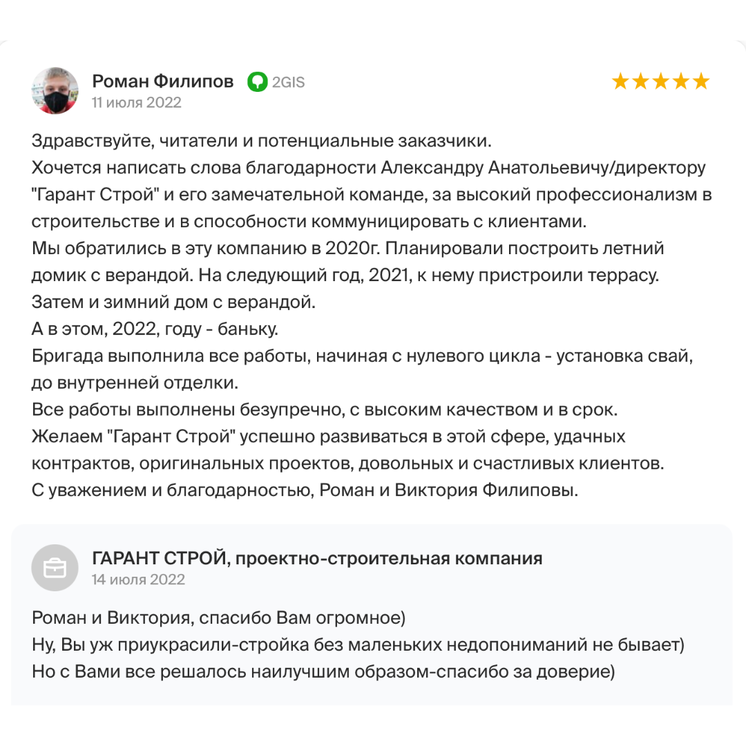 Предлагаем Вам ознакомится с реальными отзывами о работе с нашей строительной компанией. Уверены, они помогут вам принять верное решение!