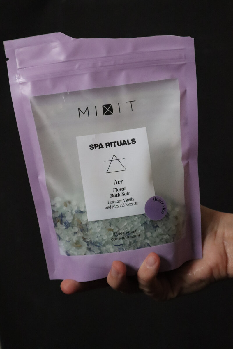 Девочки, если вы хотите расслабиться и получиться релакс, то вот моя рекомендация. Соль для ванны от Mixit. Бренд прислал продукты на тестирование, и мне очень понравилась эта соль. Она так вкусно пахнет! Такой приятный аромат, как будто реально попала в спа салон. Я очень верю в действие соли, а когда в составе еще есть ароматерапия, состоящая из: Принимать ванну после тяжелого трудового дня настоящее блаженство. Маленькие цветочки мило плавают, когда соль высыпаешь в ванную. Это так завораживающе. Хочется, чтобы уже скорее эти цветочки окутали твое тело. В упаковке 350 грамм, и я разделила пакетик на 2 раза. И я хочу еще!!! А вы пробовали это чудо соль спа? Пишите свои рекомендации и ощущения!
