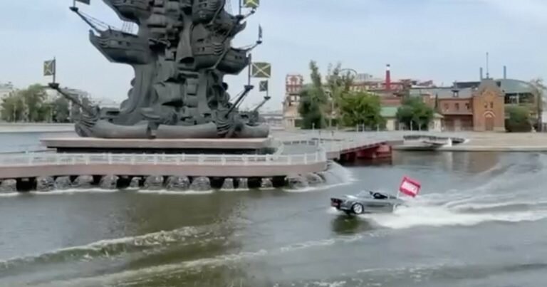 Необычное судно (а его можно так называть) промчалось прямо на фоне памятника Петру I. На видео, опубликованном в телеграм-канале «Новости Москвы», Ford Mustang серого цвета идет по воде словно катер — нос в виде капота и передних колес приподнят над уровнем воды, в то время как задняя часть машины погружена примерно по багажник. Да и звук «машина» издает тоже как у катера. В комментариях замечают, что буквально вчера этот «Мустанг» стоял на выставке тюнингованных автомобилей, и делятся видео, снятом вблизи. На нем видно, что вместо багажника у него действительно установлен самый настоящий двигатель от катера. А другие москвичи замечают, что подобные автомобили-амфибии довольно часто встречаются в Турции. Оказывается, этот «Мустанг» прибыл к нам из Санкт-Петербурга, где его в качестве шутки создали мастера из тюнинг-ателье. Но на самом деле это не автомобиль, а самый обычный катер, поверх которого установили кузов из стекловолокна, имитирующий машину. Соответственно, передвигаться по д