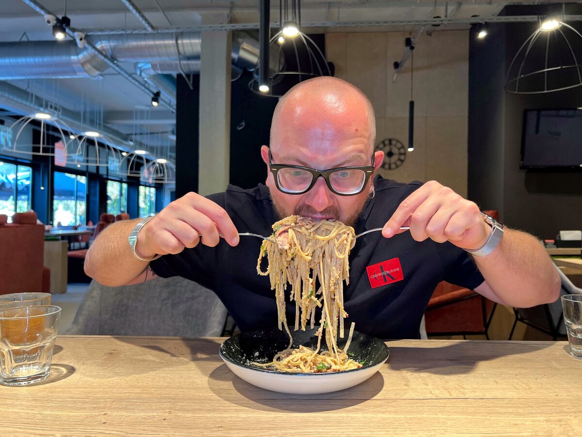 2. Гаражная Карбонара стоит 13,30byn. Тут вам не итальянское кафе, поэтому на сливках, макароны выбрали лингвини, похожие на удон. Предпочитаю спагетти, а бекон нарезать, а не выкладывать ломтями, как на пиццу. Сытно, по вкусу вкусно, ещё 5byn — и цена итальянской траттории.
