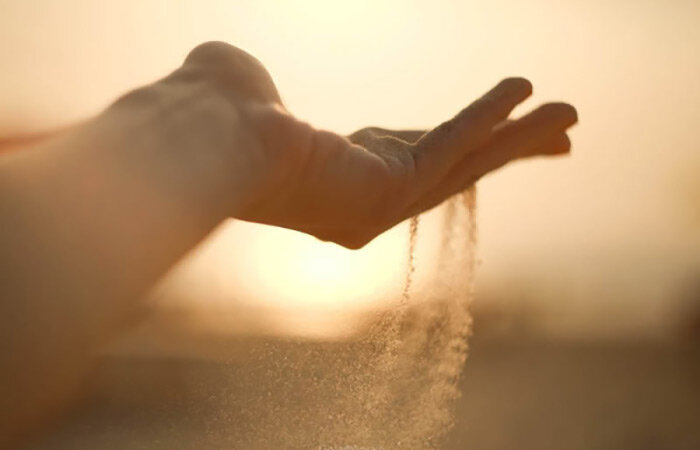 Приляг на отмели. Обеими руками Горсть русого песку, зажженного лучами. Возьми... и дай ему меж пальцев тихо стечь. Потом закрой глаза и долго слушай речь Журчащих вод морских и ветра трепет пленный, И ты почувствуешь, как тает постепенно Песок в твоих руках... и вот они пусты. Тогда, не раскрывая глаз, подумай, что и ты Лишь горсть песка, что жизнь порывы воль мятежных Смешает как пески па отмелях прибрежных... Анри Де Ренье, 1925 год (Перевод Максимилиана Волошина) ***** Прилечь на отмели, двумя руками взять (Чтоб за песчинкою песчинку высыпать) Горсть белого песка, что золотит закат, И, раньше чем глаза закроешь, бросить взгляд На море стройное и в глубину небес; Потом, почувствовав, что весь песок исчез Из облегченных рук, что нет в них ни крупицы, Подумать, прежде чем опять раскрыть ресницы, О всем, что наша жизнь берет у нас, мешая Летучий свой песок на отмели без края. Анри Де Ренье, 1925 год (Перевод Валерия Брюсова) ***** Приляг на берегу. Не говоря ни слова, Возьми в ла
