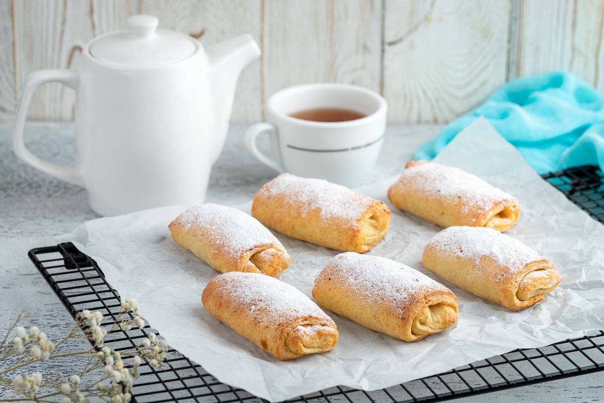 📖 Ингредиенты: - Творог - 350 г. - Сливочное масло - 150 г. - Сметана - 50 мл. - Сахар - 50 г. - Ванильный сахар- 1 ч. л. - Разрыхлитель - 1 ч. л. - Мука - 320 г. Для начинки: - Варёная сгущёнка - 200 г. - Сахарная пудра - 20 г. 🧑🏻🍳 Приготовление: 1. В миске растереть творог, сахар и мягкое сливочное масло. 2. Добавить сметану и перемешать. 3. Добавить ванильный сахар, разрыхлитель и муку. 4. Замесить мягкое тесто. Готовое тесто положить в целлофановый пакет и убрать в холодильник на 30 минут. 5. Охлаждённое тесто раскатать на присыпанной мукой поверхности в квадрат толщиной 3 мм. Разрезать полоски длиной 8 см и шириной 9 см. 6. На край каждой полоски выложить 1 чайную ложку вареной сгущенки, накрыть первым слоем теста, защипать со всех сторон и завернуть в рулетик. 7. Отправить в разогретую до 180С духовку на 30 минут. Готовые печенья остудить и посыпать сахарной пудрой. #выпечка #творожноепеченье #печенье 🔝