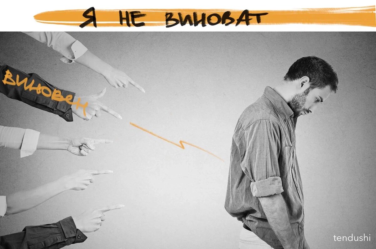 Я не виноват. Переживание чувства вины понижает нашу самооценку, которая, вполне вероятно и без того не высокая. Порой мы пытаемся взять на себя ответственность за то, в чём не виноваты (родители ссорятся -и мой долг их помирить. Если не справился — я виноват), а порой нам это чувство вины навязывают извне «Если бы ты не...». Подобное бывает и во взрослой жизни. Чувство вины может быть обращено только к прошлым и только к действию. Чувство вины не может относится к будущему или к своим мыслям -это чувство стыда. В связи с чувством вины к нам часто обращаются люди находящиеся внутри абьюзивных отношений. Тут сразу важная ремарка: даже если вы расстались с абьюзером, до тех пор пока вы продолжаете следовать навязанным вам когнитивным установкам, образ этого человека и образ этих отношений живёт внутри вас, возможно, живёт вместо вас.Тема абьюза очень сложна и актуальна и мы более детально коснёмся её в наших других статьях. Сейчас же обратимся к чувству вины. Мы неспроста вспомнили абьюз