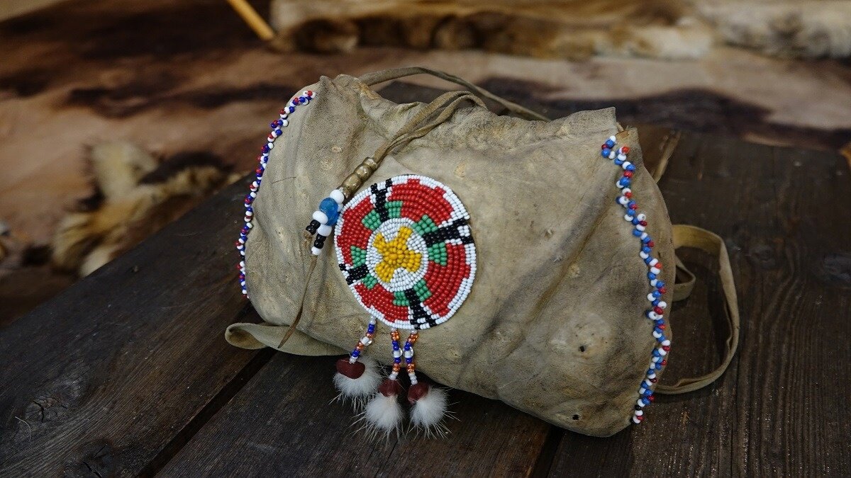 Сумочка из ровдуги, вышитая бисером Думаете, тема мешков и сумок полностью раскрыта? Нет! Сумки коряков и чукчей были необычайно разнообразными по форме, материалу и назначению. Для чего обычно изготавливались сумки? - для хранения одежды - для хранения вещей во время перекочевок - для переноски тяжестей (это мы уже знаем!) - для хранения спичек, табака, денег А в сумочках для рукоделия женщины хранили нож для кройки, ножницы, сухожильные нитки, нитки для вышивания, бисер, полосы-заготовки орнаментов. Довольно часто к такой сумочке крепили игольник. А ещё сумки заменяли в жилище подушки, сиденья и ёмкости для хранения продуктов. Отдельный вид сумок – похоронные и ритуальные. Материалом для изготовления сумки могло служить практически всё, что окружало людей в природе. Совершенно фантастически выглядят сумочки из гусиных и лебединых лапок, ласт нерпы, рыбьей кожи и тушек птиц. Про растительные волокна и оленью кожу как материал для сумок и мешков мы уже писали. А ещё «оленьи» сумочки мо