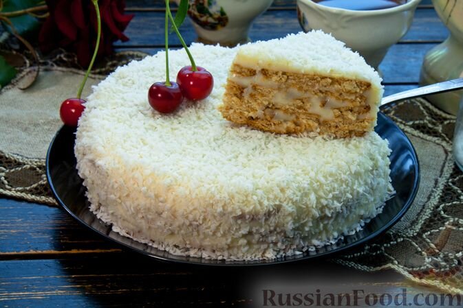 Торт из сгущёнки и печенья готовится всего из четырех обычных продуктов, а главное, без выпечки. Потребуется лишь время на застывание. Мягкие "коржи" из крекеров отлично сочетаются с ароматным кремом из сгущенки. Торт хорошо держит форму. Сверху посыпается кокосовой стружкой. Простой и очень вкусный тортик!
