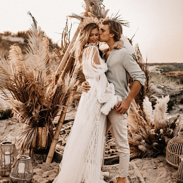 Приглашаем вас на яркую свадьбу — с восточными нотками, перышками, свечами, экзотическими растениями и ламами! Настоящее вдохновение для любителей бохо шик! БЮДЖЕТ: не разглашается ПОДГОТОВКА: от 3 до 6 месяцев ГОСТЕЙ: 40-80 СТИЛЬ: бохо шик Наша цыганская свадьба получилась очень яркой! В оформлении пара использовала хрусталь, свечи, карты таро и перья… Много шика, перьев и полевых сухоцветов— в композициях. План рассадки был выполнен в формате карт таро с именами гостей, с которыми они подходили к гадалке. Она в шутливой форме давала предсказания и сообщала номер их столика. Лама и альпака, которые появились сразу после церемонии, стали сюрпризом для гостей и украшением фотосессии. Яркие цвета, экзотические цветы, арка с ловцами снов и перья… Много перьев — в композициях, букете невесты, даже платье было декорировано ими! На тарелке у каждого гостя стояла баночка с домашним вареньем, сваренным молодоженами. А вместо бумажных пригласительных у нас был сайт свадьбы — современны