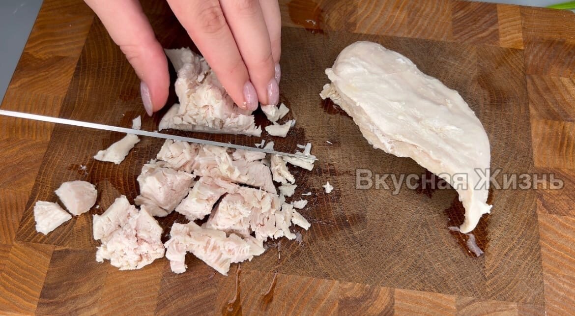Добро пожаловать на канал "Вкусная Жизнь"! Рада приветствовать своих постоянных читателей и всех, кто заглянул ко мне впервые! Сегодня приготовим закрытые мини-пиццы из хрустящего слоеного теста, с начинкой можно экспериментировать. Ингредиенты: 1. Слоёное бездрожжевое тесто - 450 гр. 2. Куриное филе - 1 шт. 3. Помидор - 1 шт. 4. Майонез - по вкусу. 5. Кетчуп - по вкусу. 6. Сыр - 50 гр. 7. Яйцо - 1 шт. Способ приготовления: 1. Куриное филе отвариваем в подсоленной воде со специями до готовности, затем мелко нарезаем или разбираем на волокна. 2. Помидор нарезаем кружками. 3. Слоёное бездрожжевое тесто нарезаем на длинные полоски. 4. Смазываем кетчупом и майонезом. 5. Затем выкладываем помидор. 6. Сверху выкладываем куриное филе и натёртый сыр. 7. Сверху накрываем слоёным тестом, лишнее тесто отрезаем, должен получится квадрат. 8. Склеиваем края. 9. Выкладываем на противень застеленный пергаментной бумагой. Слойки смазывается яйцом. 10. Отправляем в разогретую духовку