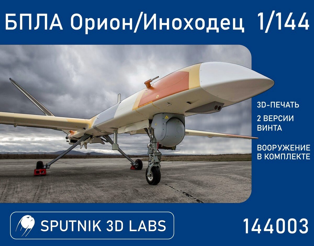 Зеленоградская компания Sputnik 3DLabs выпустили свою новую модель - российский БПЛА Орион/Иноходец в 1/144 масштабе. Наконец-то, хоть что-то отечественное, а то уже надоели своими Байрактарами да Риперами.