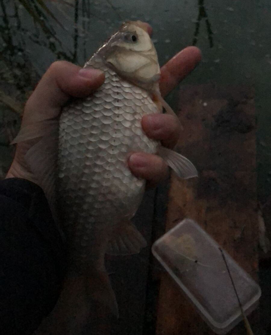 Ха, да там отличный карась! Да, глубина маленькая, но это не так страшно. Но вот дальше у напарника пошла мелось, но несколько ладошек поймал еще.