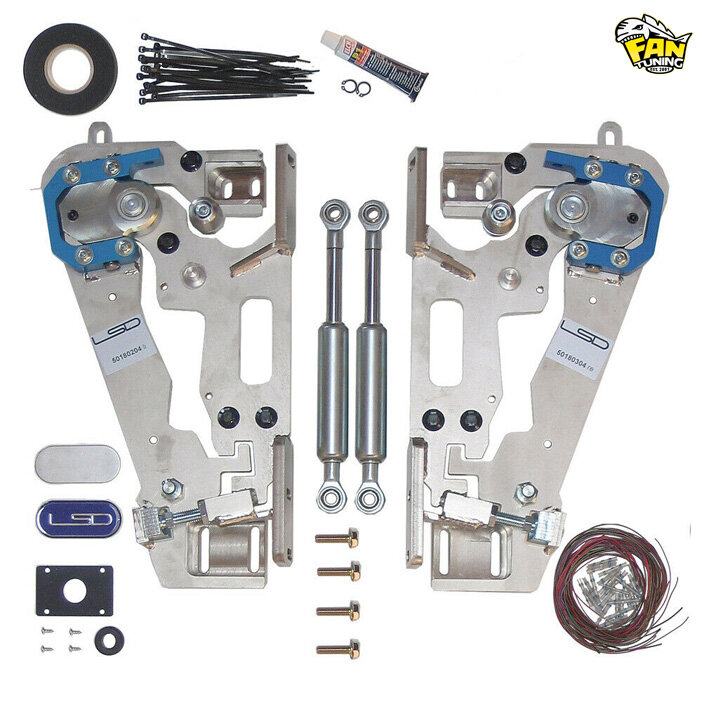 Я уже писал про то, какие виды дверей в стиле Ламборгини встречаются, в этом разделе я разместил каталог ламбо дверей (а точнее ламбо петель) от немецкой компании #LSD . Это самый удачный и надежный вариант вариант. Да, эти комплекты стОят определенных денег, но зато разрабатываются под конкретную модель автомобиля и ставятся bolt on (то есть не требуют работой болгаркой и сварочных работ). При необходимости #ламбо петли можно демонтировать и установить обратно родные. Вот комплектность и внешний вид ламбо дверей LSD: А вот в универсальных комплектах помимо минусов при установке есть такие немаловажные нюансы: 1. Амортизатор петли не рассчитан под вес двери и либо дверь не будет подниматься, либо нужно будет прикладывать большое усилие, чтоб затянуть ее вниз из верхнего положения. 2. Единственное, что может выйти из строя в #ламбо двери - это амортизатор и если это был комплект универсальный, то начинаются поиски этих амортов, которых обычно никто не находит. Тогда либо нужно подбира