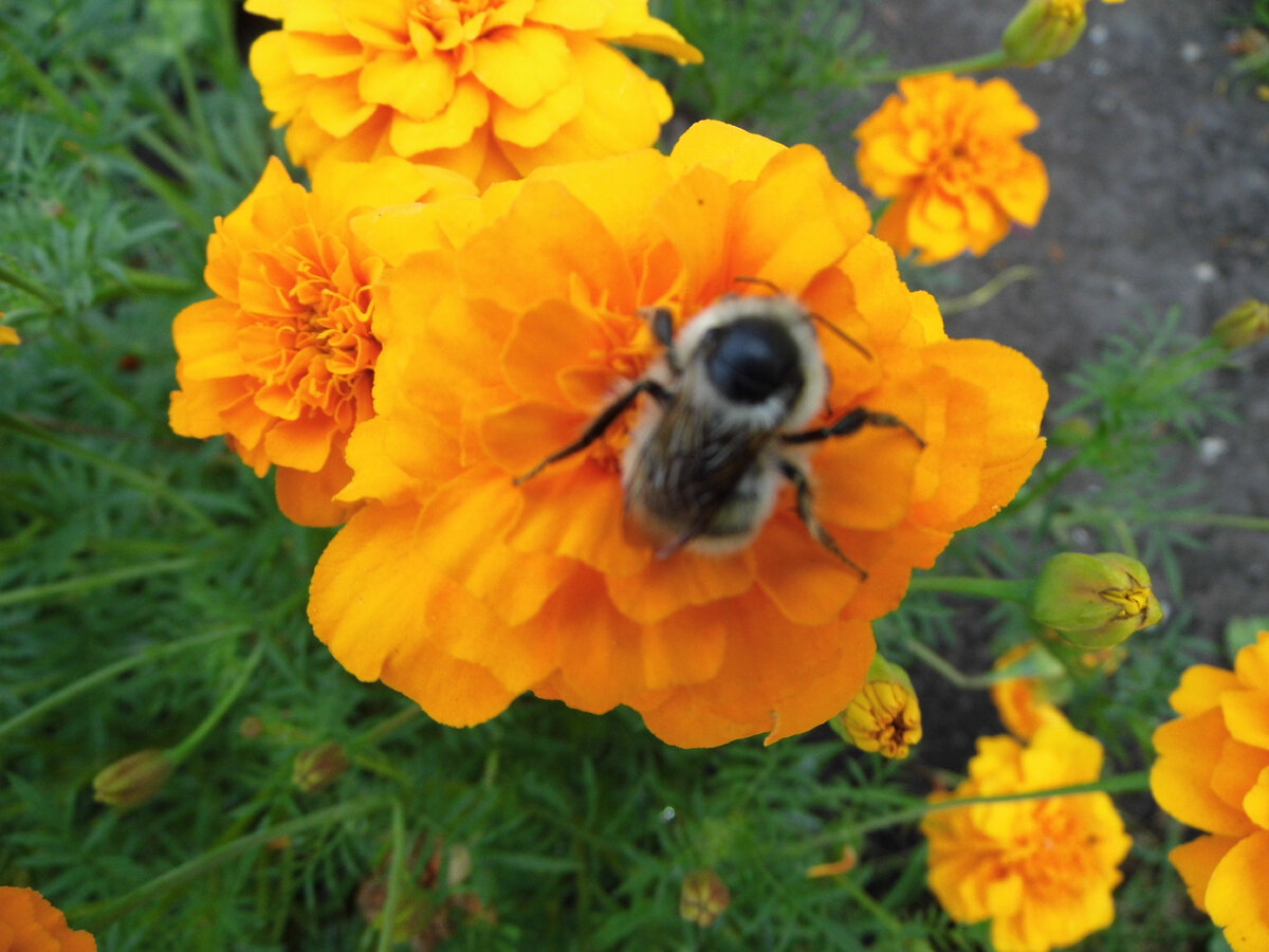 Уважаемые подписчики и гости моего канала! Сегодня, как и обещала, немного о бархатцах с нашего сада! Кстати бархатцы – ценное садовое и лекарственное растение, насыщенные противовоспалительными и антиоксидантными компонентами. Оно широко применяется в народной медицине и косметологии, имеет под собой доказательную базу. Бархатцы способны уничтожить вредные микроорганизмы, бороться с инфекционно-воспалительными патологиями, наладить работу кишечника, снизить риск развития злокачественных опухолей и некоторых хронических заболеваний, вылечить раны и ожоги кожи, уничтожить паразитов. Смотрим фотографии красивых бархатцев. Это двухцветные бархатцы... Это коричневые бархатцы... Это яркие жёлтые бархатцы. Это оранжевые бархатцы... Сейчас температура воздуха стала намного ниже, всё-таки осень. Вот и пчёлки стали сонными. Поэтому их легко можно сфотографировать. Ну вот и всё, чем я хотела поделиться сегодня с вами. Спасибо тем, кто дочитал до конца. Делитесь своим опытом и новостями. Став