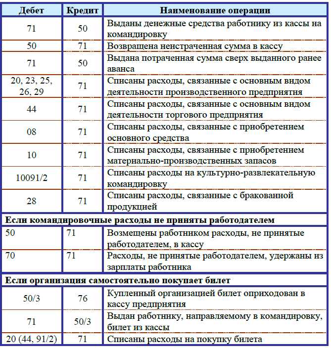 5. Командировочные расходы списываются со счета 71 в дебет счетов учета товарно-материальных ценностей или учета расходов.