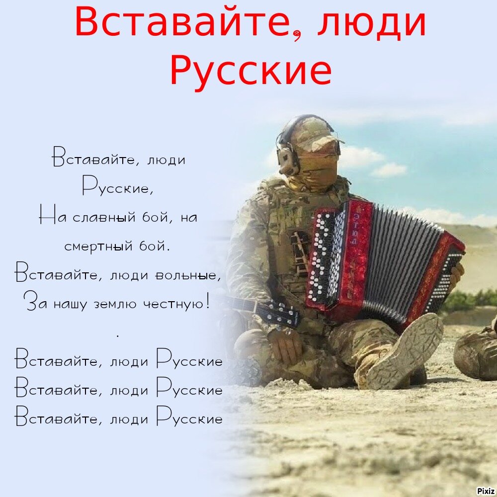 Русская Одесса и Москва Донбасс кровавый, пляжи - острова Аллея ангелам, пати крюшон Она на чили, он по контракту пошел ... Здравствуй милая. Чмоки пацан Был на задании. Я в кафе икебан Друга убили, звали Казбек Печально пожалуй, а вот и стейк ... Как там мама? Я не слыхала Завтра за ленту. Ужин с клиентом важная встреча, не удобно сейчас Конечно, понимаю, в следующий раз ... Столица не спит, площадь Европы Летят кадиллаки, сверкают билборды Мама ждет, в одежде черной Поезд пришел, привез двухсотых ... Парни и девчонки с Курска и Таганки Идут добровольцы, без маршей Славянки Мимо прохожих смотрящих в низ Идущих в театры на пошлый бенефис ... Помни Кабул и Порт-Артур Россию усыпили, в гробу несут Живи Новороссия, живи русский мир Это война, Россия проснись!