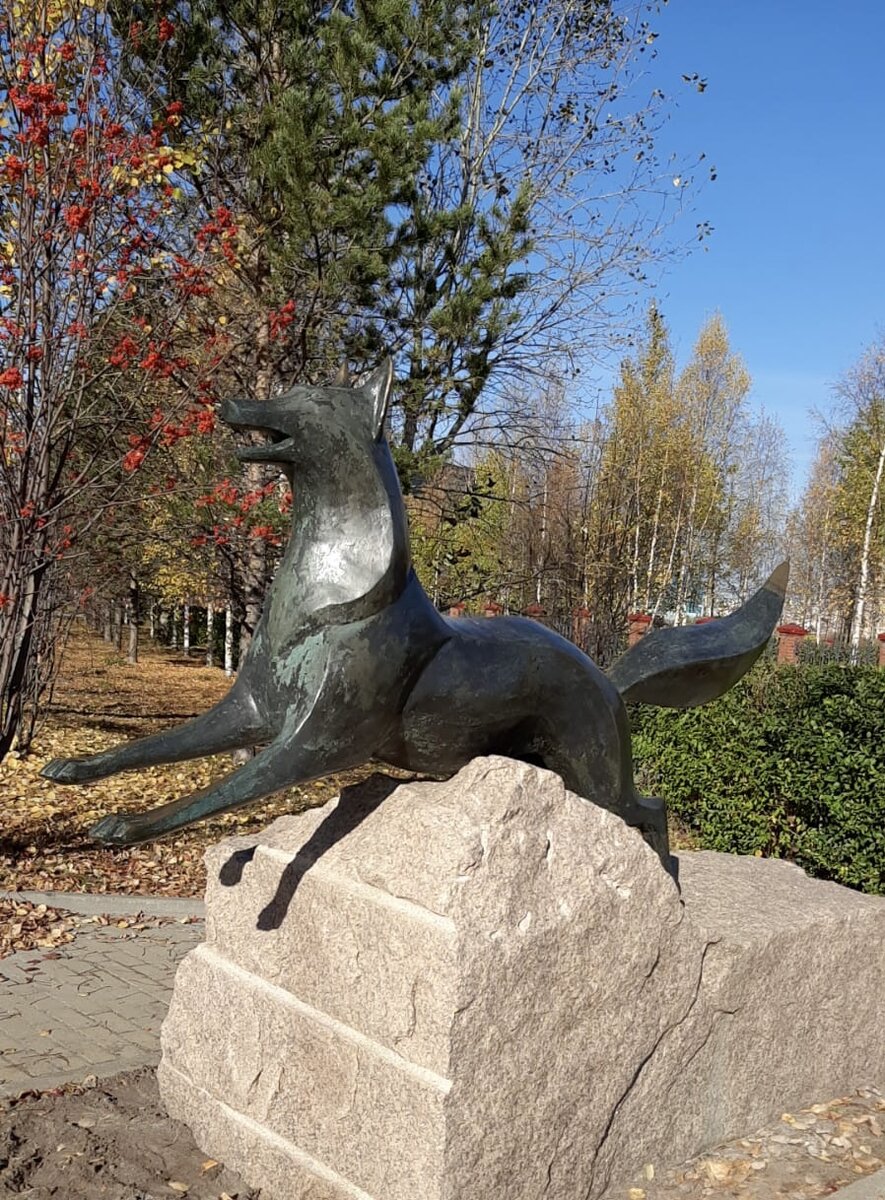 В историко- культурном центре " Старый Сургут " находится детская площадка " Забава", на территории которой расположен " Лисий парк." Черный лис красуется на гербе Сургута. Поэтому у него ,естественно, должен быть памятник. В 2006 г. состоялось его торжественное открытие .Установлено это геральдическое животное на территории ИКЦ" Старого Сургута". Начало повествования можно посмотреть пройдя по ссылке: Существует легенда В стародавние времена была традиция : угорские богатыри с дальних и ближних озёр собирались, чтобы узнать кто самый сильный , ловкий и выносливый. Первое и самое главное задание: богатыри брали камень по силе и несли его на холм - Лисий холм. Назвали его так потому, что весь он был изрыт норами. Героем становился тот, кто смог занести самый большой камень на вершину холма и удержать его там. Результатом этой деятельности людской явилось то, не осталось там совсем лисьих нор. И поэтому лисы ушли из этих мест. И только один Чёрный Лис не сдавался и не уходил. Старо