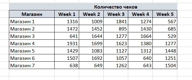 Спарклайны в excel, или микро-графики, которые помещаются в одну ячейку, используют, когда нужно показать тенденции в изменении данных. Выделить минимум или максимум, и сравнить поведение объектов между собой. В этой статье: Как эффективно использовать спарклайны в Excel Для того, чтобы использовать спарклайны наиболее эффективно, необходимо соблюдать следующие требования: Эти требования не обязательны (можно и по одному объекту создать спарклайн), но их соблюдение помогает использовать спарклайны наиболее эффективно. Иначе они будут просто визуальным «шумом». Рассмотрим на примере, как построить спарклайн. Есть таблица данных с динамикой количества чеков по неделям. Как видите, в таблице соблюдены оба требования: несколько недель, чтобы показать динамику, и несколько магазинов, чтобы сравнить их между собой. Как построить спарклайны в Excel Спарклайны бывают трех типов: график, гистограмма и выигрыш/проигрыш. Принцип построения у них одинаковый, поэтому рассмотрим на примере типа Гр