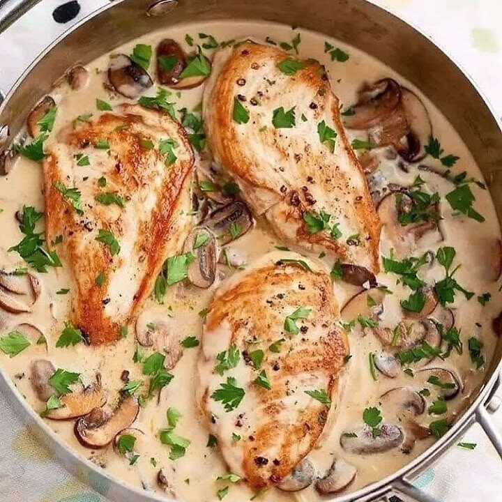 Всем Привет!Рада приветствовать вас на моём канале!Сегодня представляю вашему вниманию быстрый в приготовлении, а самое главное вкусный рецепт! Приехали вы домой после работы а возится с едой ой как не охота, а кушать хочется... нет ничего быстрее и проще чем куриная грудка в сливках с грибами, а на гарнир можно отварить картошечку и очень вкусно! Для приготовления этого блюда вам понадобится: И так начнем! Картофель промыть,почистить,залить водой, поставить варить на среднем огне воду подсолить.С готового картофеля слит воду добавить масло и накрыть крышкой.Лук очистить,нарезать кубиком.Грибы промыть,обсушить нарезать ломтиком.Филе промыть,обсушить посолить и поперчить с двух сторон.В разогретую на среднем огне сковороду с высокими бортами или сотейник налить немного масла и обжарить грудку до золотистого цвета с двух сторон по три минуты.Вынуть грудку на тарелку,добавить немного масла и обжарить лук до золотистого цвета,добавит к луку грибы обжарить три минуты помешивая,влить сливки.