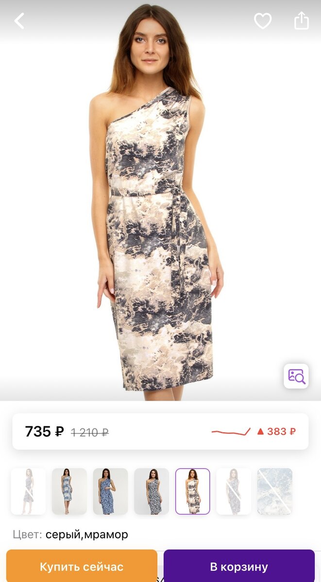 Всем доброго денёчка, друзья! Сегодняшнюю статью я решила посвятить одной необычной покупке на Wildberries. Наверное, преобладающее большинство девушек и женщин любят обновки и красивые наряды, и я - уж точно отношусь к этому самому большинству. Периодически, покупаю что-то по необходимости, что-то просто по симпатии, что-то по очень выгодным предложениям, с расчётом на будущий сезон, даже если, к примеру, сейчас это уже не надеть. Заказала я как-то на Wildberries платье, нашего Российского бренда под названием Апрель. Мне оно обошлось в 363₽. Артикул - 28294091 Не знаю, что меня привлекло, наверное - практичная и необычная расцветка серый/мрамор (у меня таких не было), доступная цена, неплохой состав материала. Асимметрия, которая мне ну очень нравится (ещё про неё - вот здесь). За окном как раз стояла сильная жара, так что, взяла, что называется, для разнообразия. Это мой крайне редкий опыт покупок каких-то подобных фирм/брендов, поэтому было даже несколько интересно. Что я могу сказ