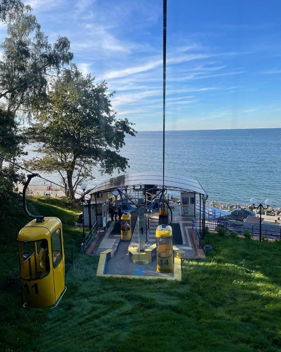 Рядом с санаторием есть остановка автобусов, можно уехать в город на экскурсии: Калининград, Янтарный, Зеленоградск. Но я советую вам ездить на электричках: быстрее, дешевле и удобнее. Рядом с вокзалом «Светлогорск-2» есть канатная дорога, работает с 9 до 21, выходные дни — понедельник и вторник. От спуска захватывает дух, красиво и немного страшно, кабинки покачиваются и скрипят. Стоимость проезда (для пенсионеров) — 20 рублей, полный — 50 рублей. Красивая набережная рядом (ул. Морская). Рядом с санаторием есть магазин, можно купить все необходимое.