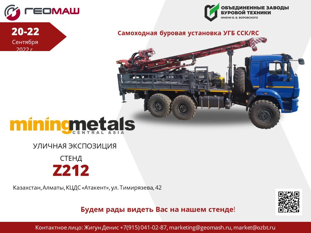 Приглашаем Вас посетить стенд компании ОЗБТ им. В.В. Воровского и «Геомаш» на 27-й ЦЕНТРАЛЬНО-АЗИАТСКАЯ МЕЖДУНАРОДНАЯ ВЫСТАВКА "ГОРНОЕ ОБОРУДОВАНИЕ, ДОБЫЧА И ОБОГАЩЕНИЕ РУД И МИНЕРАЛОВ" Mining and Metals Central Asia (mining-metals.kz), которая пройдет с 20 по 22 сентября 2022 в г. Алматы (Казахстан) в КЦДС "Атакент" (уличная экспозиция Z212).
