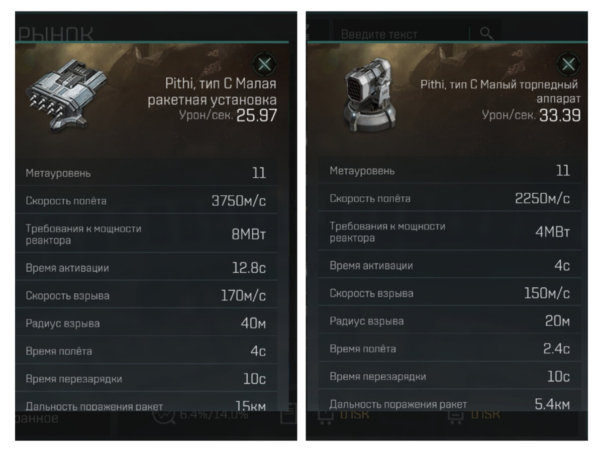 Одна из самых обширных тем этого блока, с огромным разнообразием (для нашей игры) типов орудий. Кардинально отличаются от турелей, как и пушки не тратят энергию на стрельбу, но не имеют остаточной дальности, и их донесение урона зависит на прямую от размера и скорости цели, в случае слишком маленького размера и сверх высокой скорости урон ракет может упасть до нуля или быть близким к этому. И начнём разбор с малых ракетных установок. Дальние ракеты имеют самую большую оптимальную дальность, и урон сопоставимый с лазерами, но надо помнить о перезарядке в 12.8 секунд. Малый торпедный аппарат неплохо работает на мелкие цели, и по ДПС уступает только рельсам в этом классе. Из кораблей можно выделить линейку кондр, довольно неплохие пвп корабли. О фракционном фрегате гармур легиона морд речи сейчас идти не будет, на данный момент цена этого корабля слишком велика. И не окупает во многом своих бонусов. На обзоре теперь средние ракеты, аналоги малых ракет, только на средние корабли. С