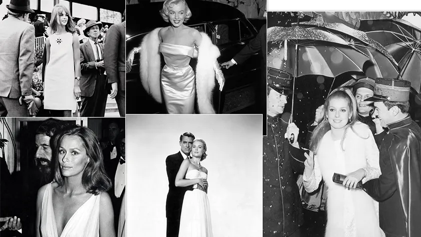 Мэрилин Монро в атласе, Грейс Келли в свадебном шелковом платье-футляре, Одри Хепберн в белом платье в стиле шестидесятых... С 1950-х по 1970-е годы эти иконы, одетые в белое, оставили свой след в памяти. Посмотреть, чтобы вдохновиться перед выбором Своего Главного Платья. Мэрилин Монро в 1954 году. В 1954 году Мэрилин Монро посетила нью-йоркскую премьеру фильма «Нет бизнеса лучше шоу-бизнеса» в платье из шелка и писца. Софи Лорен в 1955 году. В июле 1955 года Софи Лорен была одета в платье без бретелек с перешитой вышивкой, подчеркивающее ее потрясающие изгибы, перед выходом на Гранд-канал в Венеции. Грейс Келли в 1955 году. Грейс Келли и Кэри Грант на съемках фильма Альфреда Хичкока «Поймать вора», 1955 год. Брижит Бардо в 1958 году. Вместе с Сашей Дистель Брижит Бардо посетила парижскую вечеринку в феврале 1958 года. Элизабет Тейлор в 1959 году. Одетая в белое платье с драпировкой, Элизабет Тейлор посетила вечеринку в Лос-Анджелесе с Эдди Фишером в январе 1959 года. Джеки Кеннед