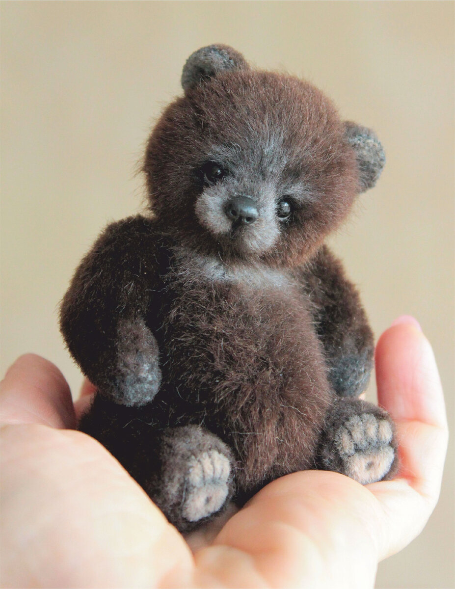 Светлана Гуменникова Размер 11 см Готовим материалы: Все перечисленное можно купить в магазине ХОББИСТУДИО. Описание работы: 1. Раскрой Вырезаем детали выкройки. Припуски на швы (3 мм) включены. Переносим детали на ткань. Не забываем следить за направлением ворса и переносить все метки. Проверьте перед тем, как начнете вырезать, наличие всех частей мишки. Помните, что некоторые детали нужны в количестве 2-4 штук, и часть этих деталей наносится на ткань в зеркальном отражении. Обратите внимание, что подошвы и 2 детали ушек выкраиваются из отделочной ткани, все остальное – из меха. Вырезаем кончиками острых ножниц, стараясь не повредить ворс. Ворс по краям деталей на ширину припусков и на вытачках убираем. УШКИ не трогаем! Также примерно в 2 раза укорачиваем ворс на кончиках всех лап. 2. Сшивание Шьем голову. Все детали сшиваются швом «назад иголка». Сначала сшейте вытачки, затем сшейте между собой боковые детали головы от точки А вниз до вытачки. Затем вшейте клин. Начните пришивать ег