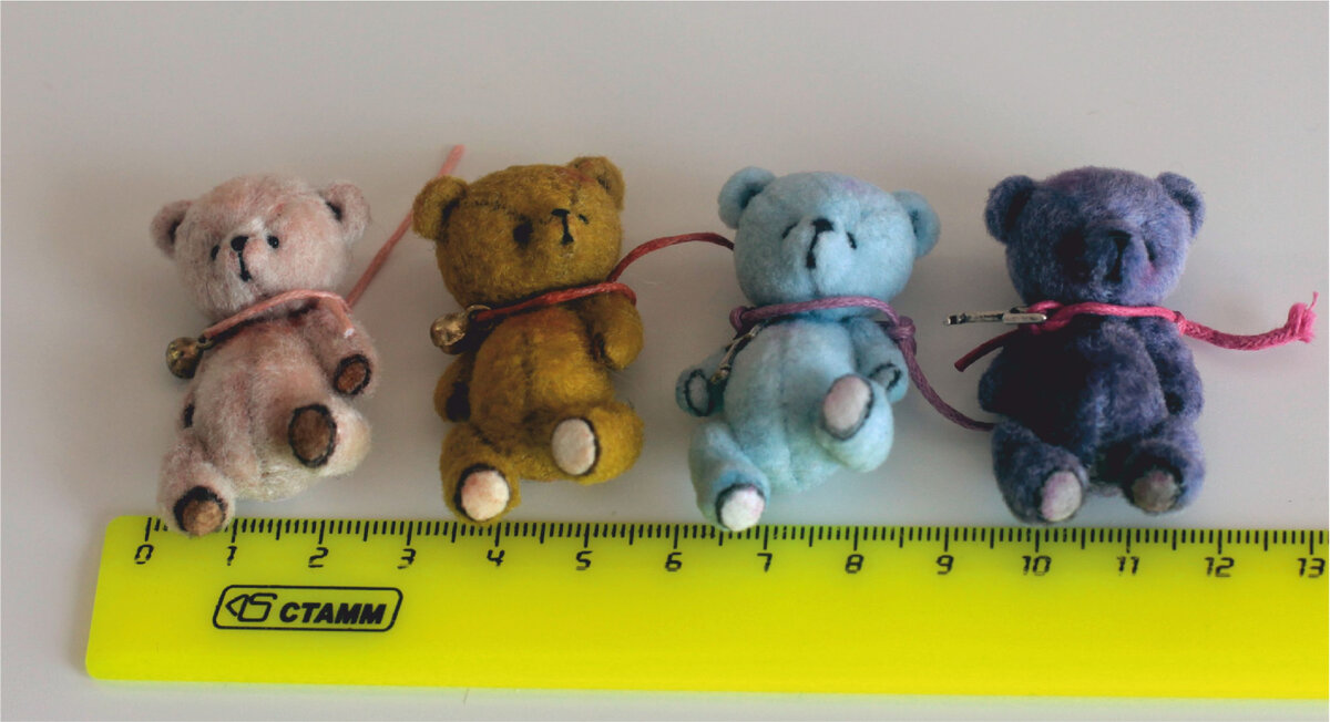 Светлана Гуменникова Как знают многие любители миниатюры, самые маленькие диски на сегодняшний день - это 6 мм. И до этого момента все, кто шьют, вяжут или валяют миниатюрные игрушки, делали нитяные крепления или сами пытались вырезать мини диски из подручных материалов. Но мы, так как любим, уважаем и сами делаем миниатюрных мишек, решили этот вопрос и специально заказали микродиски для самых маленьких игрушек. И теперь в продаже появились микро диски 3, 4 и 5 мм! К ним есть малюсенькие петельные шплинты 1,0*6 мм и другие... Теперь даже самый лилипуточный мишка может быть со шплинтами и дисками:) А теперь немного фотографий, как мы делали миников с микродисками и микрошлинтами. И вот готовый результат - мишка 4 см, весь на шплинтах, голова на двойном качающемся креплении. Использованы микродиски 4 мм в лапки и 5 мм в голову, петельные шплинты 1,0*6 мм. Все оказалось совсем не страшно, все легко закрутилось с помощью обычных круглогубцев с тонкими кончиками! Следующий такой же в про