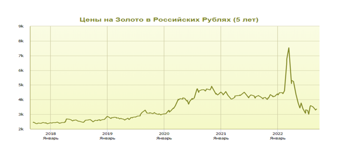 После 24.02.2022 г. учетная цена ЦБ РФ на физическое золото за 16 календарных дней выросла с 4 899 руб/гр на 23.02.22 г до 7 731 руб/гр на 11.03.2022 года https://www.cbr.ru/hd_base/metall/ По состоянию на 10 сентября 2022 года Банки https://www.lanta.ru/metals/catalog/ продают золотые слитки по цене 3 373 руб/гр, что в 2,29 раза (!) ниже максимальных цен (7 731 руб/гр) на золото и в 1,33 раза меньше среднегодовых (4500 руб/гр) цен на золото в слитках. Предлагаем инвестировать от 1 млрд руб в покупку золотых слитков (296 кг) через банк и одновременно застраховать риск падения (38% от инвестиций) цены через "фьючерсный стеллаж" (продажу/покупку фьючерсов на золото и фьючерсов на курс доллара США к рублю) на личном брокерском счете Клиента. Целевая доходность в течение 12 месяцев составит от (4500-3373)*296:1 000 0000*100=33% до (7731-3373)*296:1 000 0000*100=128% или +1 280 000 000 руб в течение года. Коммерческие условия: 2% от размера инвестиций в год (20 млн руб от 1 млрд. руб) и