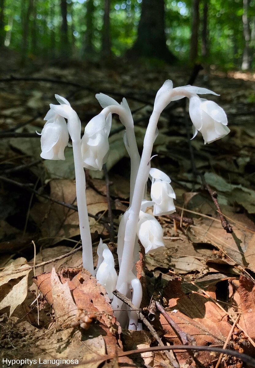 Подъельник одноцветковый. Monotropa uniflora. За необычный вид растение в английском языке называется Растение-Призрак ( Ghost Plant). Бледный цвет растения объясняется отсутствием хлорофилла. Растение не производит питательные вещества с помощью фотосинтеза. Питание Подъельник получает не совсем обычным путём. Дело в том, что это растение находится в симбиозе с мицелием грибов родов Сыроежка и Млечник. Сами же грибы находятся во взаимовыгодном симбиозе с деревьями. Грибные гифы проникают в межклеточные пространства древесных тканей, не повреждая клеток и производят взаимный обмен питательных веществ. Грибные гифы начинают выполнять функцию корневых волосков, дающих дереву большую площадь покрытия корневой системой. Эти "грибные корни" приносят дереву воду и минеральные вещества, вырабатывают антибиотики, защищающие от болезней. Дерево взамен дает грибному мицелию ( грибным корням) питание - сахар. Таким образом, густо разветвленное корневище Подъельника через грибной мицелий