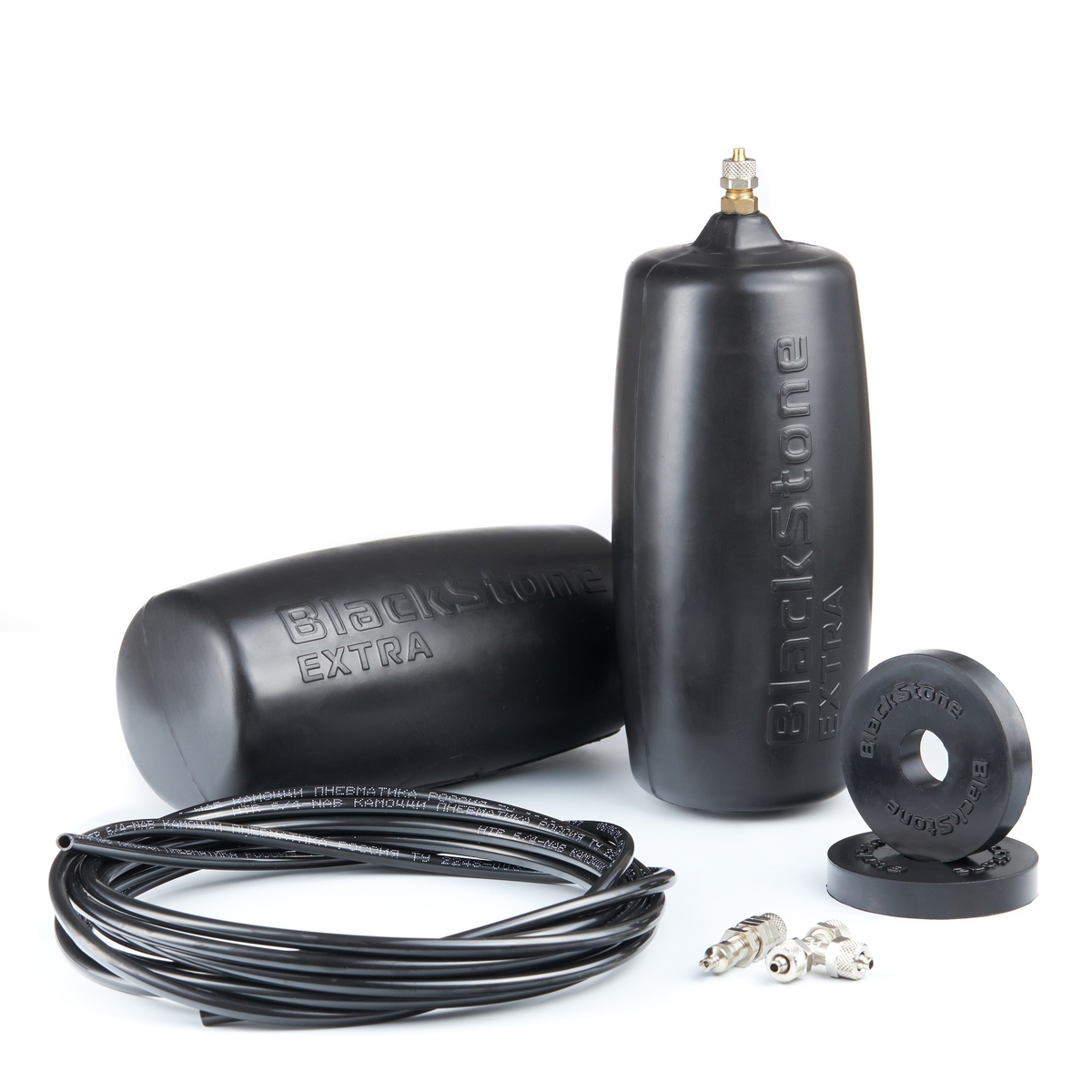 Новейшая эксклюзивная усовершенствованная линейка цельнорезиновых пневмобаллонов BlackStone EXTRA! Мы разработали усиленный штуцер, который стал надежнее за счет низкой посадки и выдерживает большую нагрузку на отрыв. Усовершенствованный состав резиносмеси в пневмобаллонах обеспечивает высокую стойкость к износу и большим нагрузкам. Придают еще больше комфорта при движении автомобиля, благодаря своей эластичности. Бочкообразная форма позволяет корректно занять место даже при низком рабочем давлении.